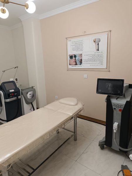 تخت موتور دار، تخت لیزر واسپیلت ،تلویزیون، دو عدد یخچال ،دستگاه فور ، سانتریفیوژ ،تعدادی ژل و بوتاکس و وسایل مصرفی ، ترولی و کانتر منشی ، دو عدد استابلایزر ، آبسردکن ، مبلمان دیزاین عالی باتمام دستگاه های فیشال