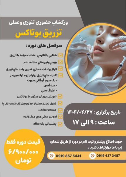 ورکشاپ حضوری تئوری و عملی تزریق بوتاکس