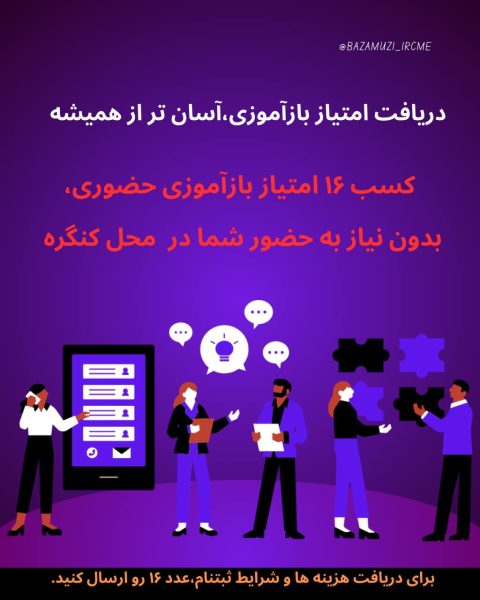 ما در bazamuzi_ircme@ به جای تو در برنامه های آموزش مداوم شرکت و امتیاز اونها رو برات کسب میکنیم.